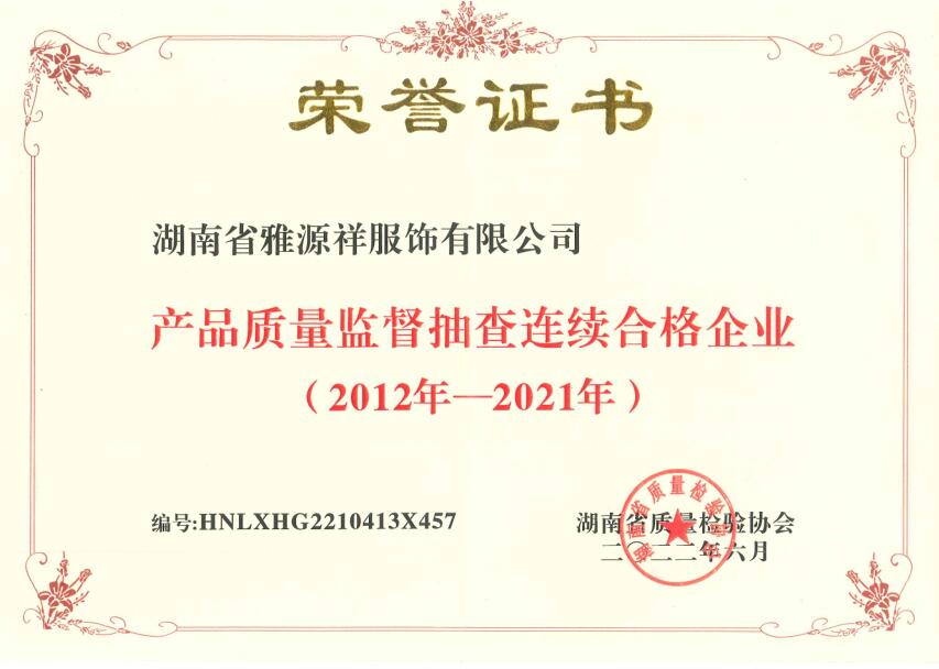 產(chǎn)品質(zhì)量監(jiān)督抽查連續(xù)合格...